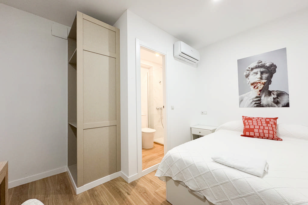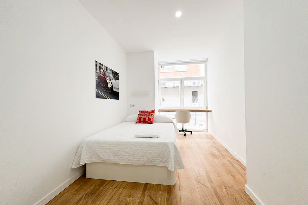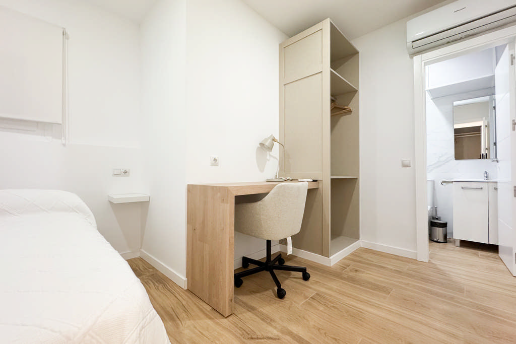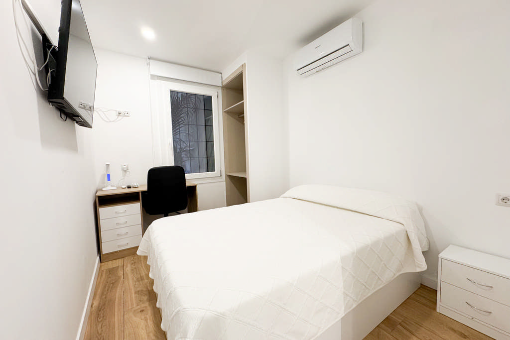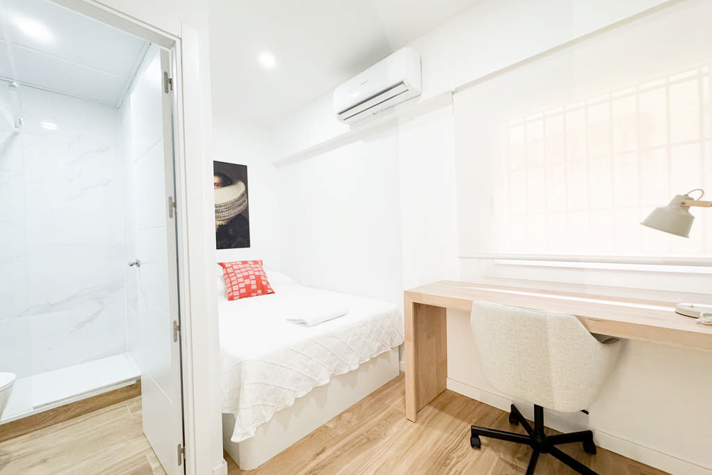 * Las habitaciones tipo DOBLE únicamente se podrán reservar si vienes acompañado por un amigo/a o familiar con el que compartir la habitación y si tu estancia es igual o mayor a 1 mes completo.